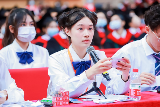 董事会董事、校长助理刘婉莉(字霖霖)受刘荣海董事长委托,代表学校董事会向2022届全体毕业生表示热烈的祝贺。她讲道,学校为此届
