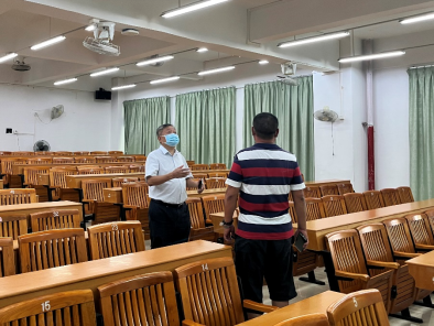 为确保校园安全稳定和开学第二周线下教学工作安全有序开展。9月3日,王庭槐校长在相关部门负责人和应急值班值守干部的陪同下在东莞校区对疫情防控、消防安全、环境卫生、教学设施等工作进行了巡查。
