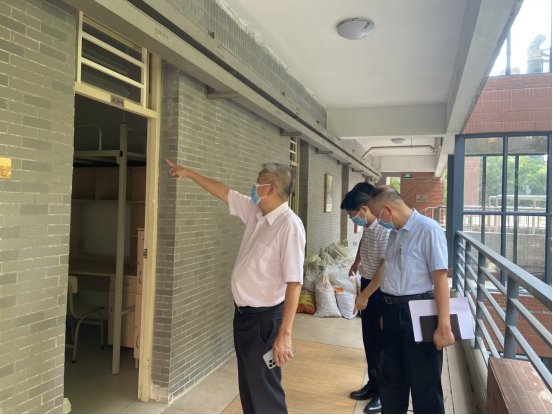 (以下简称“我校”)校长王庭槐、党委书记郝登峰、校长办公室主任黄立文带领总务处、保卫处等部门对东莞校区新生宿舍进行检查。