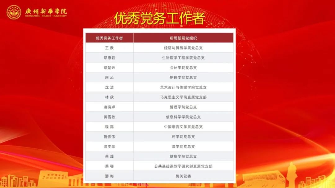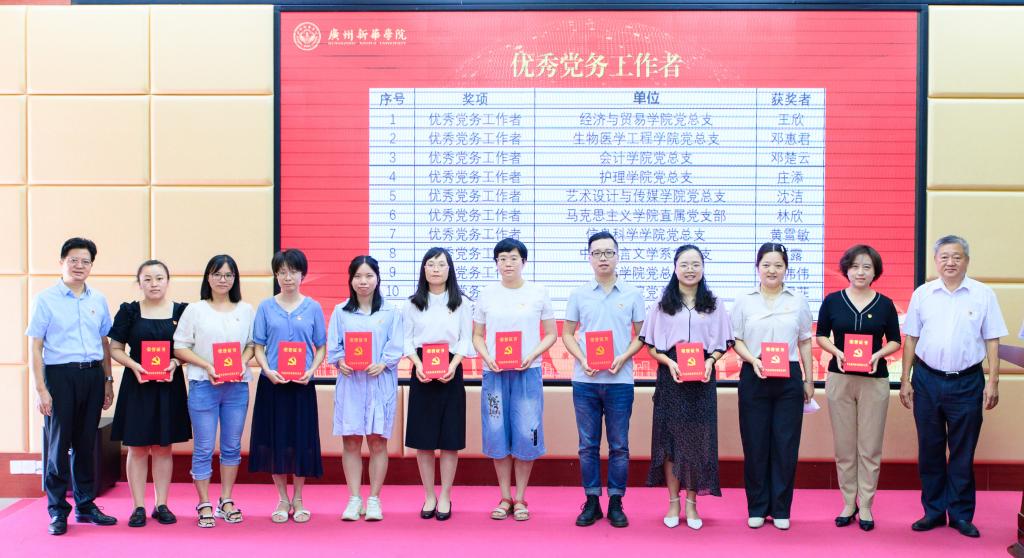 郝登峰书记、王庭槐校长为“优秀党务工作者”颁奖并合影留念