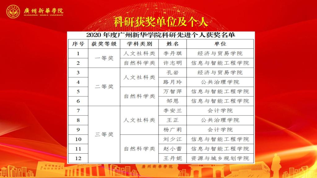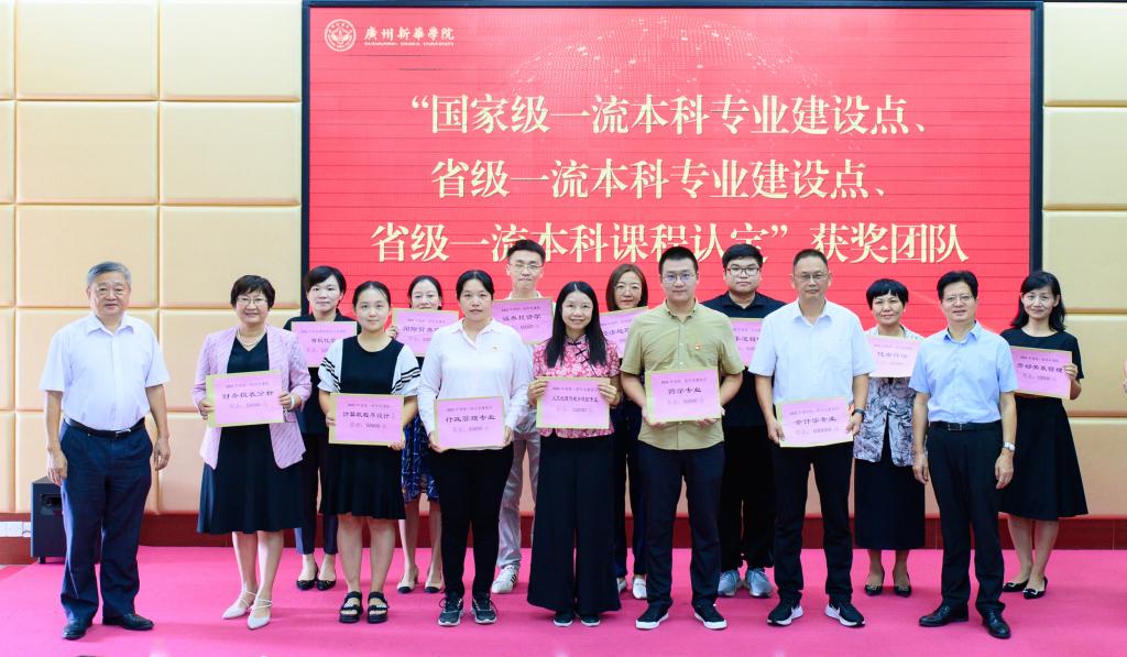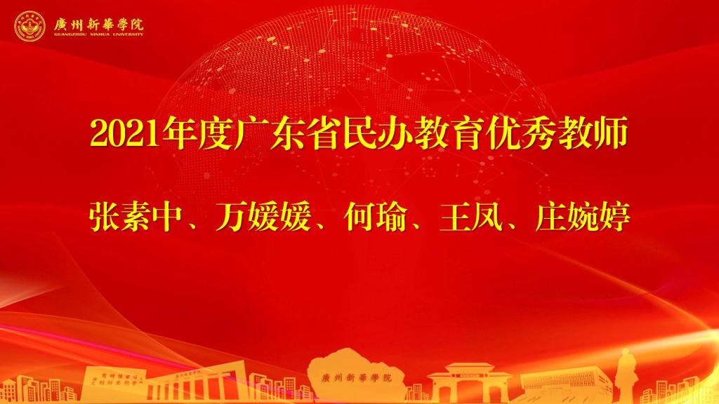 王庭槐校长、郝登峰书记为“2021年度广东省民办教育优秀教师”获奖者颁奖并合影留念