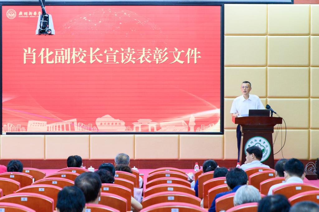 (以下简称“我校”)2022年教师节表彰大会在广州校区举行。学校领导,学校发展专家顾问委员会、教学指导委员会成员,教学督导代表,受表彰的教师和教育工作者代表,各院(系)党政负责人、首席教授、学科带头人,各职能部门负责人,入选“双百计划”教师代表及中青年骨干教师代表、新入职教师代表等百余人参会。大会由李中生副校长主持。