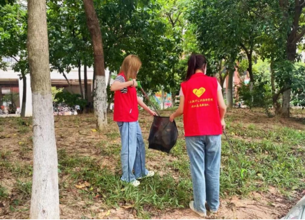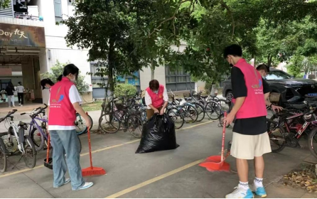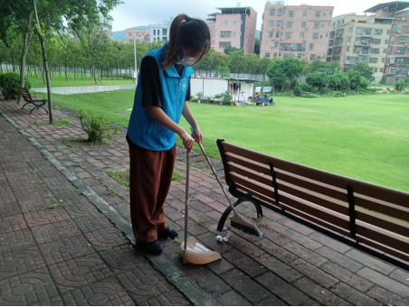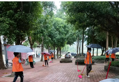 管理学院满天星志愿服务队志愿者扫除宿舍楼下垃圾