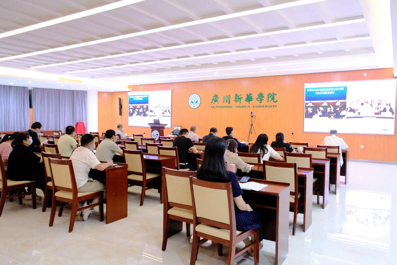 11月14日晚,省教育厅召开全省2022年校园疫情防控工作专班第26次视频调度会。我校分别在广州校区、东莞校区设立分会场,我校校长王庭槐、党委书记郝登峰、副校长李中生、副校长肖化、副校长胡卓加、副监事长廖振亮,疫情防控领导小组、各部门、各院系负责同志、相关工作人员参加会议。