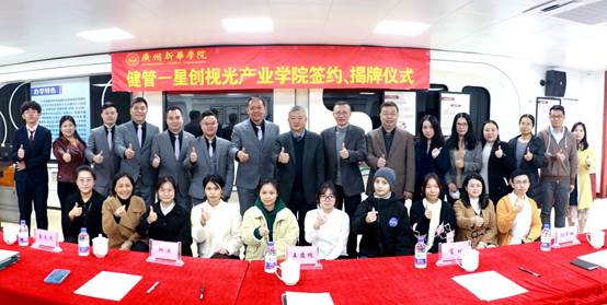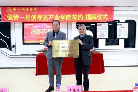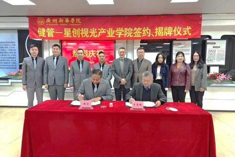 (以下简称“我校”)联合广东星创视光光学科技有限公司(以下简称“星创视界大南区”),在广州校区举行健管-星创视光产业学院签约、揭牌仪式,标志着我校首个产业学院正式成立,为我校进一步加强校企合作、深化产教融合,完善高素质应用型人才培养体系作出有益探索。