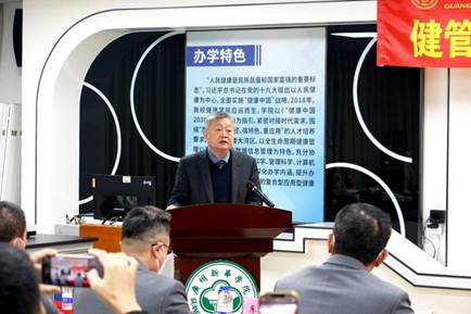 王庭槐校长在发言中指出,健管-星创视光产业学院的成立,是我校积极贯彻落实党的二十大精神的重要举措;希望产业学院坚持“三融”(即融入产业、融入行业、融入企业)、“三化”(即实践平台化、课程模块化、考评多元化)、“五结合”(即产业与教育相结合、教学与生产相结合、能力培养与岗位标准相结合、高校师资与企业师资相结合、理论与实践相结合)的建设理念,探索出一种集教育链、人才链、产业链与创新链有效衔接的教育新模式,走出一条“与区域产业共生,与行业企业共赢”的高质量发展之路,为培养更多优秀人才,服务国家战略和粤港澳大湾区经济发展作出贡献。