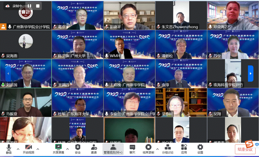 会计学院承办的2022广东高校工商管理类专业“双万”工程高质量发展研讨会以线上形式顺利召开。广东省本科高校工商管理类专业教指委主任委员,广州大学党委书记兼校长魏明海教授,