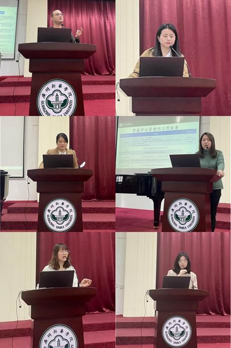 培训会上,我校教务处教务科、实践教学科、教学质量监控科、学籍学位管理科、教学研究科、综合科六个科室分别围绕工作内容、工作分工、工作流程、注意事项等进行展示与讲解,并提出具体的工作要求。