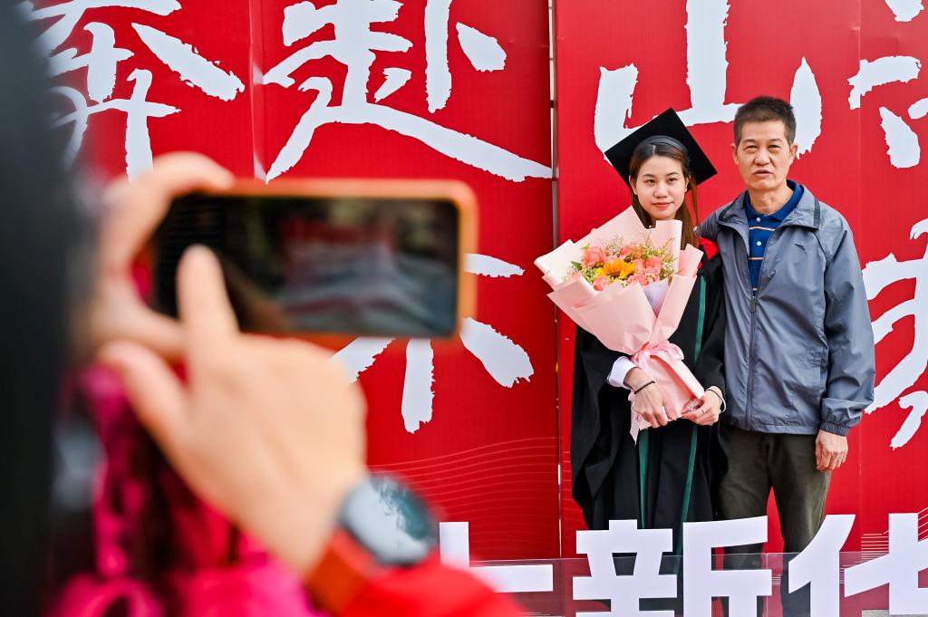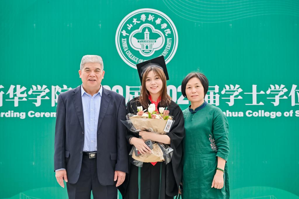 会计学院学生家长区女士:很开心学校举办此次学位授予仪式,完成了孩子的一个心愿,也圆了我们家长参与孩子成长过程的愿望。如今孩子已经离开校园走上工作岗位,我想借今天这个机会对孩子说:“现在你回到‘娘家’了,要找回以前学生时代的积极性,把求学阶段学到的知识融入你的工作中,争取更上一个台阶。”