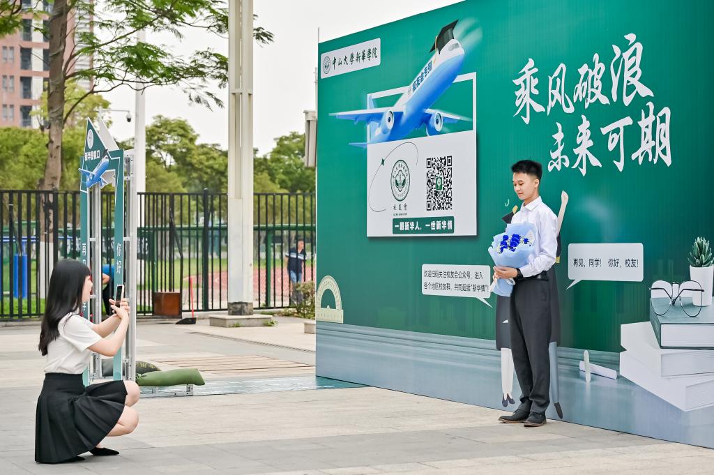 校园里随处可见对校友返校的欢迎和祝福。“时光列车”回顾了同学们四年的大学生活,唤起校友们的大学青春回忆;温馨的展板、摆件、横幅,表达了学校对“归家”校友的翘首以待。