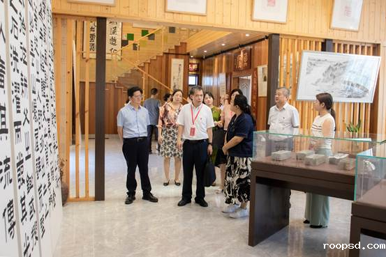 指导组在我校蔡照波艺术馆观看艺术设计学专业书法方向毕业作品展