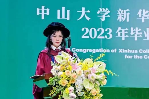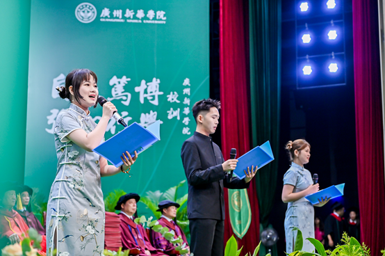 学校董事会董事、副校长刘婉莉(霖霖)受刘荣海董事长委托,代表学校董事会向全体毕业生表示最热烈的祝贺。她在讲话中回顾了学校近年来发展历程与办学成果,指出学校将继续本着高度负责的态度,以更高站位主动融入国家高质量发展大格局,为党育人,为国育才,为国家和社会发展贡献更多“广州