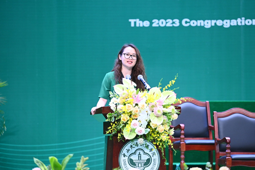 来自护理学院的优秀毕业生代表李可梦同学,代表全体毕业生,向辛勤培育他们的母校、老师,坚守岗位、服务师生的