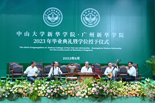 学校坚持“五育并举”,将“非遗”文化引进校园办学举措,特邀来自“中国戏曲之乡”——东莞市麻涌镇的红豆曲艺苑,在典礼上为全体师生现场演奏广东民乐《步步高》《孔雀开屏》两首曲子,祝愿同学们前程似锦,步步高。