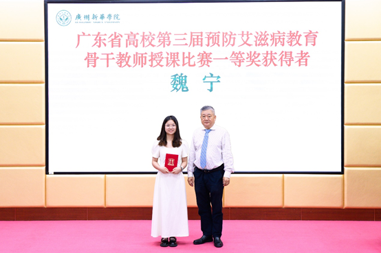 王庭槐校长为“广东省高校第三届预防艾滋病教育骨干教师授课比赛一等奖”获奖者代表颁奖