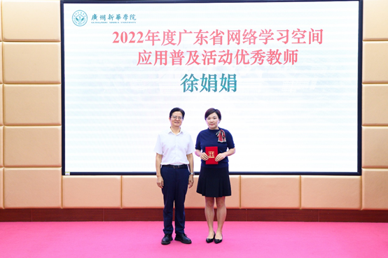郝登峰书记为“2022年度广东省网络学习空间应用普及活动优秀教师”获奖者代表颁奖