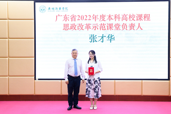 王庭槐校长为“广东省2022年度本科高校课程思政改革示范课堂”获奖者代表颁奖