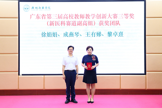 郝登峰书记为“广东省第三届高校教师教学创新大赛三等奖(新医科赛道副高组)获奖团队”颁奖