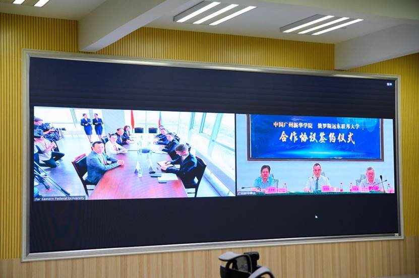 (下文简称“我校”)与俄罗斯远东联邦大学签署合作协议。远东联邦大学校长鲍里斯·尼古拉耶维奇·科罗贝茨、外事副校长叶甫根尼·叶甫根尼耶维奇·弗拉索夫,我校副校长马龙海,董事会秘书刘东瑶,外事处中俄教育合作项目主任王骏涛出席在符拉迪沃斯托克(海参崴)签约现场,我校董事长刘荣海,校长王庭槐,党委书记郝登峰,副校长李中生、姚正安,董事会董事、学校副校长刘婉莉(霖霖),经济与贸易学院院长袁持平,外事处处长康星华出席在我校东莞校区现场。