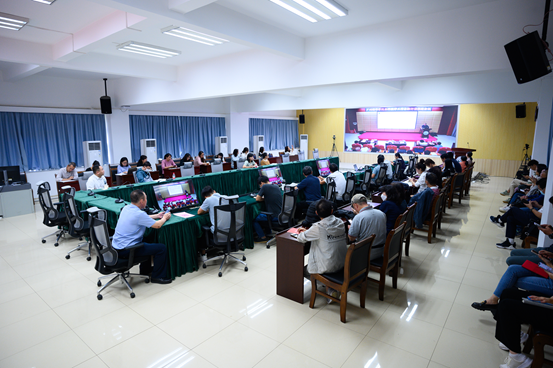 王庭槐校长作题为《凝心聚力,挺膺担当,全力以赴确保通过合格评估》的工作部署。他首先向大家梳理了转设评估、合格评估、审核评估的概念、内涵及逻辑关系,他指出转设评估和合格评估都是底线评估,因此,学校近年来一直将转设回头看评估与合格评估紧密结合、有机推进。接着,王庭槐校长对学校合格评估工作作了全面部署和精心安排,一是从国家制度层面、学校自身发展需求等方面强调了合格评估的必要性和重要性,指出合格评估是学校当前最重要、最迫切、最艰巨的工作任务,