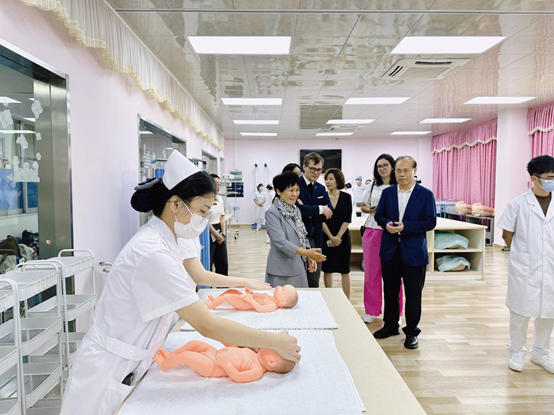 学校护理学院执行院长王秀岚向代表团介绍护理实训中心