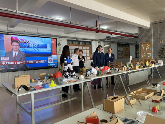 学校副校长马龙海陪同俄罗斯联邦远东大学代表团参观东莞校区FabLab创新实验室