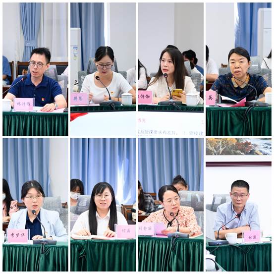会上,《党的光辉历程》课程组林诗维老师、《党的性质、指导思想和宗旨》课程组樊慧老师、《入党的程序和条件》课程组欧衍伽老师、《习近平新时代中国特色社会主义思想》课程组周月英老师、《理想、信念和入党动机》课程组李梦华老师、《共产党员先锋模范作用》课程组付晶老师、《中国共产党章程导读》课程组刘静丽老师、《党的组织制度、纪律和作风》课程组林源老师分别就本组工作推进情况、存在问题、改进办法、工作成效、工作计划等作总结发言,并分享了工作开展以来的心得感悟,为今后课程组工作的有效推进提出意见和建议。