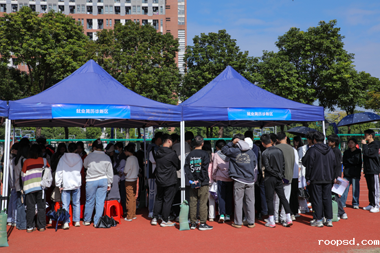 招聘会现场还设立了“简历诊断”“大学生征兵咨询处”“西部(山区)计划咨询点”等专区,咨询现场排起长队,受到同学们一致的好评。“简历诊断”专区内,学校特邀请广东智通人才连锁集团股份有限公司和中天仕达人才创新有限公司资深HR在招聘会现场为在校大学生提供就业简历诊断服务,做好毕业生的求职技巧精准服务。