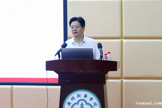 邓泽球作题为《遵循教师职业道德 促进党纪学习教育》的专题辅导报告,他指出党纪学习教育与教师职业道德的关系密不可分,围绕师德师能的基本含义、作用和如何培养三个维度展开了分析,论述了师德师能对于社会发展、国家和民族发展、学校发展和学生发展的重要意义,他还结合个人经历与实际案例,从纪律内容、警示教育两方面切入,教育引导党员教师学纪、知纪、明纪、守纪。