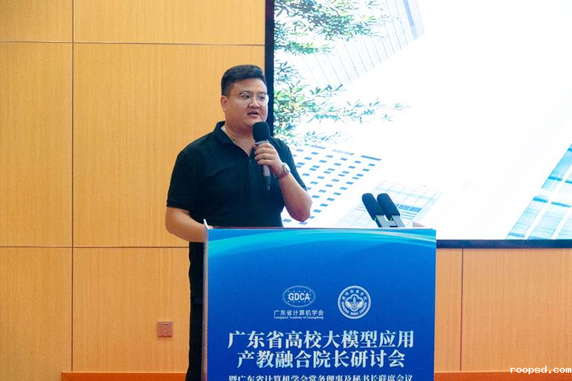 广东省计算机学会副理事长兼秘书长黄轩在致辞中表示,本次会议涵盖了大模型技术的前沿研究、应用案例和未来发展,他希望通过本次研讨会,激发大家对于产教融合新模式的研究热情,共同推动大模型教育与产业教育的深度融合。