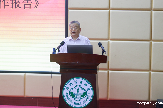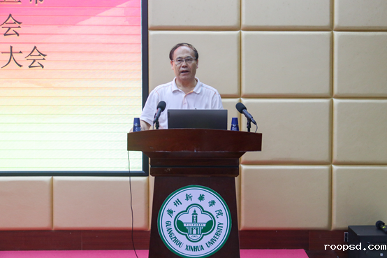 在回顾工作的基础上,王校长还重点从学校办学定位、办学思路、发展目标、重点任务四个方面对学校“十四五”发展规划进行说明,并从九个方面部署学校2024年的工作要点:一是加强党的领导,坚持社会主义办学方向,发挥党的政治核心和保障作用,巩固深化主题教育成果,切实解决师生急难愁盼问题;二是落实立德树人根本任务,把牢人才培养方向,加强“十大育人体系”建设,贯彻落实“三全育人”“五育并举”,增强学生管理与服务能力;三是以评促建以评促改,全校上下投入参与学校评建工作,细化评建任务,强化沟通协调,补短板、强弱项、保通过,推动学校内涵建设高质量发展;四是对接粤港澳大湾区和广东省区域发展战略需求,持续优化学科结构和专业布局,集中力量建设学科专业集群,打造学科品牌,彰显学科特色;五是狠抓专业内涵建设,推动面向新质生产力、中国式现代化的人才培养高质量发展,深化“四新”建设,积极开展“五金”建设,推行开放融合协同育人,深化教育教学改革,强化教学管理,不断提高应用型人才的培养质量;六是坚持学术强校、质量立校、开放办校、特色兴校,持续优化科研体制机制,积极提升科研水平和加快科技成果的转化,建立质量文化,完善质量监控体系,巩固开放办学成果,积极探寻国际交流合作新路径,突出应用性特色,引领学校高质量发展;七是加强师资队伍建设,提升师德师风水平,坚持以“六大人才计划”为抓手,进一步优化师资结构,打造一流教师队伍,全面加强师德师风建设,健全师德师风的考评工作机制;八是进一步加强学校规范化建设和内部治理的管理,统筹抓好专任教师、管理人员、教辅人员三支队伍建设,提升依法治理的能力和水平;九是对标高水平现代化综合大学的建设标准,加强校园文化建设,科学规划两校区功能定位,加快推进校园基础设施建设,提升校园服务体系的数字化、信息化、智能化建设,增强保障服务能力,打造生态、文化、品味、安全、美丽校园。