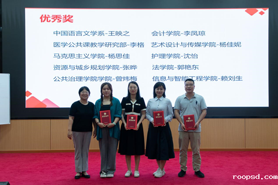 宋粉云教授(左一)为优秀奖获奖教师颁发荣誉证书