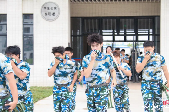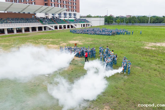 消防疏散演练开始前,各方阵的教官向同学们说明逃生步骤及注意事项。随着火灾警报声的响起,同学们快速反应,所有工作人员到达指定安全岗位,进入紧急疏散状态。同学们在军训教官们的指挥下,手捂口鼻,低头弯腰,按照逃生路线不同出口,安全有序地疏散到指定集合地点。