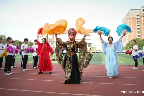 随后精彩绝伦的表演更是将田径场上的氛围推向高潮,各表演方阵身着精致的服饰,带来了独具匠心的表演,展现出广州bv伟德体育app官网学子的创意与风采。每一个方阵都像是流动的画卷,描绘着团结与奋斗的青春。