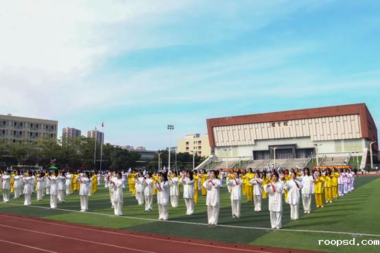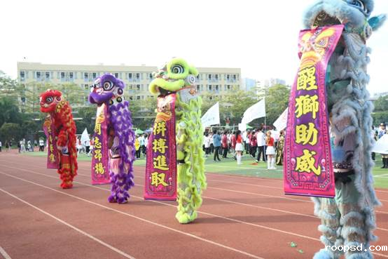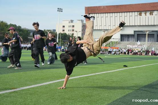 舞狮表演锣鼓喧天,威风凛凛似火焰点燃全场;健美操舞者动作整齐有力,蓝白身影如灵动画卷;太极扇表演者舒缓刚柔,步伐轻盈;还有街舞表演活力四射,青春花朵在此刻绚烂绽放,尽显朝气之美。