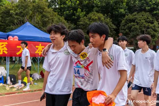 偌大的运动场上,不只有体育和竞技,还有工作人员们忙碌的身影。他们检录计分、维持秩序、清扫场地……为运动会的顺利进行保驾护航。看台上,还有一群为运动健儿加油呐喊的观众,赛场下,也总有一群为他们送上温暖的朋友。