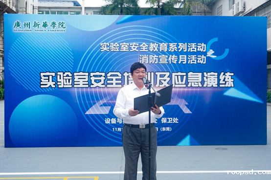 学校校长王庭槐、副校长胡卓加,广州市天河区龙凤消防微站助理黄宏贤,各院系分管实验室的领导、实验室主任、实验员,以及各二级院系和相关部门逾300名师生出席活动。本次活动由学校副校长姚正安主持。