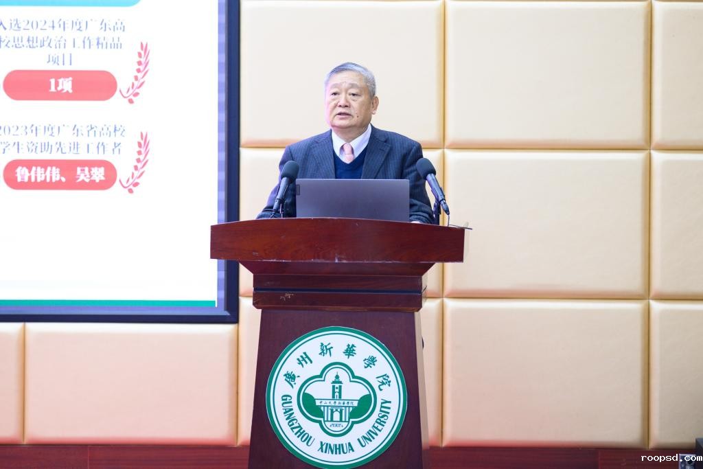 郝登峰从三个路径、三个方面总结了2024年学校党委的重点工作。2024年学校党委坚持提高领导力、决策力、执行力的工作路径:一是提高领导力,持续加强创新理论武装,加强党纪学习教育,加强集中统一领导;二是提高决策力,加强领导班子沟通,广泛开展调研,征求师生意见;三是提高执行力,通过加强动员、强化指导、增加督查,提高党建工作执行力。党委聚焦重点工作实现新突破:一是大力加强思政工作。引进思政教师、优化师资队伍结构,落实思政经费,按照要求配齐配强辅导员、心理咨询教师。二是健全党建工作机制。党委牵头制定了系列制度,在意识形态、校园安全、征兵工作等方面修订、制定了数十项制度;通过召开专题会议、加强组织保障、加强校地合作,持续完善机制建设。三是完成了评估要求的各项工作。完成了党建基地建设、网络思政作品建设、校园文化建设、党内外干部培训、党建研究慰问等各项评估工作。此外,学校党委还高质量完成了发展党员、双创工作、意识形态工作、“百千万工程”、与中山大学党建工作帮扶、征兵就业等工作。