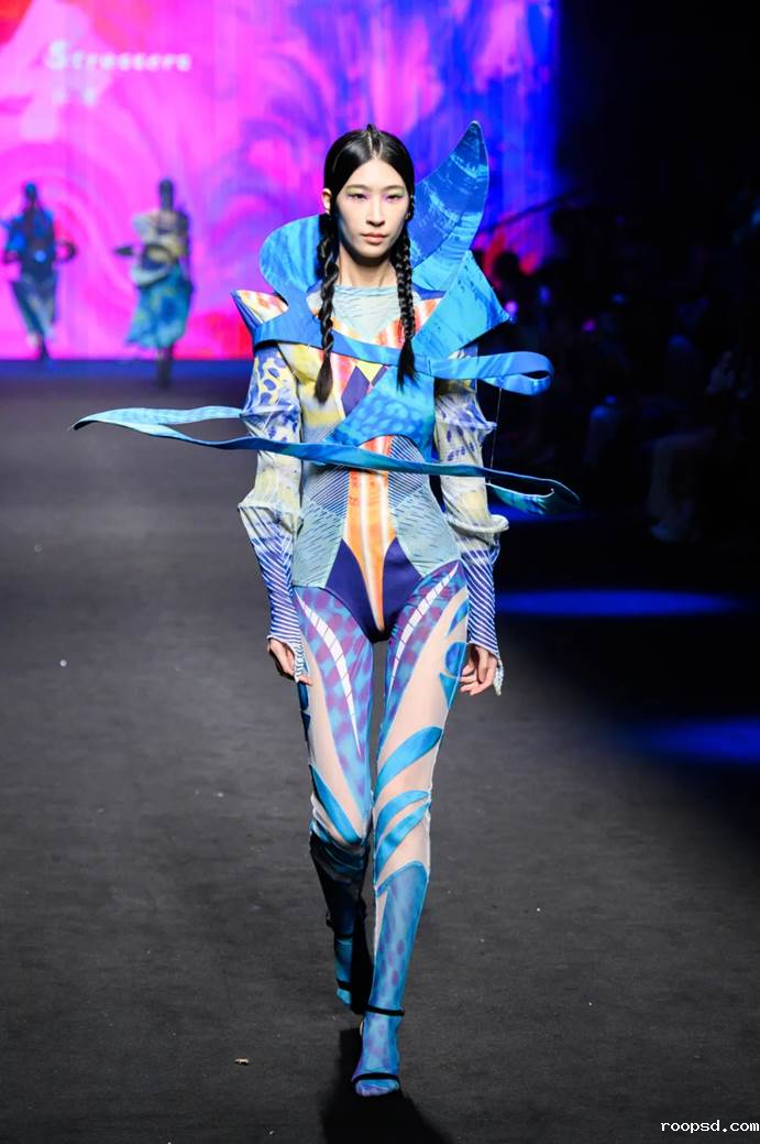 展演现场,传统元素与现代美学在针线间激烈碰撞盘扣、刺绣等非遗工艺与解构主义剪裁相映成趣,环保面料与现代设计理念共生共长,共同编织出属于新锐设计师的创意星河,为观众带来一场兼具视觉冲击力与思想深度的时尚盛宴。