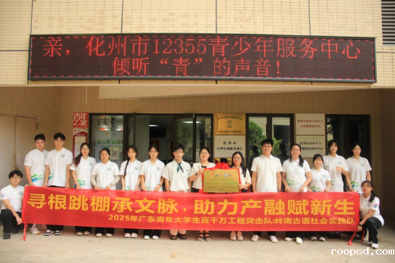 6支突击队分赴韶关、梅州、清远等地开展实践。在韶关翁源县龙仙镇,以“文化创意赋能农文旅融合”为核心,采用沉浸式直播和文创IP模式助农,发布乡村短视频,设计农产品IP形象及衍生品;在清远九龙镇,探访红色遗址并开展“非遗制豆+产品销售”直播,弘扬红色文化,助力增收;在梅州丰顺县北斗镇,聚焦茶产业升级,调研茶园与村落,探索茶旅融合路径;在茂名化州市,以非遗“跳花棚”为切入点共建传承基地,推动非遗保护与乡村振兴结合;在清远清新区石潭镇,直播推广蒲坑茶并开展健康义诊;在揭阳惠来县前詹镇,深入养殖基地和果园直播带货,走访多地规划旅游路线,为农旅融合建言献策。各团队多维度助力乡村发展,发挥专业优势,推动农文旅融合、非遗保护与产业升级,展现青年学子服务乡村的担当,为乡村振兴注入新活力。