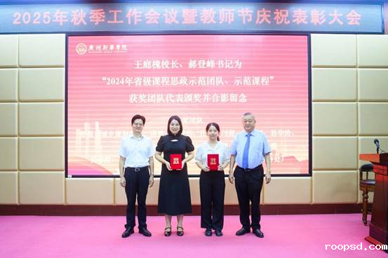 王庭槐校长、郝登峰书记为“2024年广东省第二届高校美育教师教学基本功比赛”获奖人员颁奖
