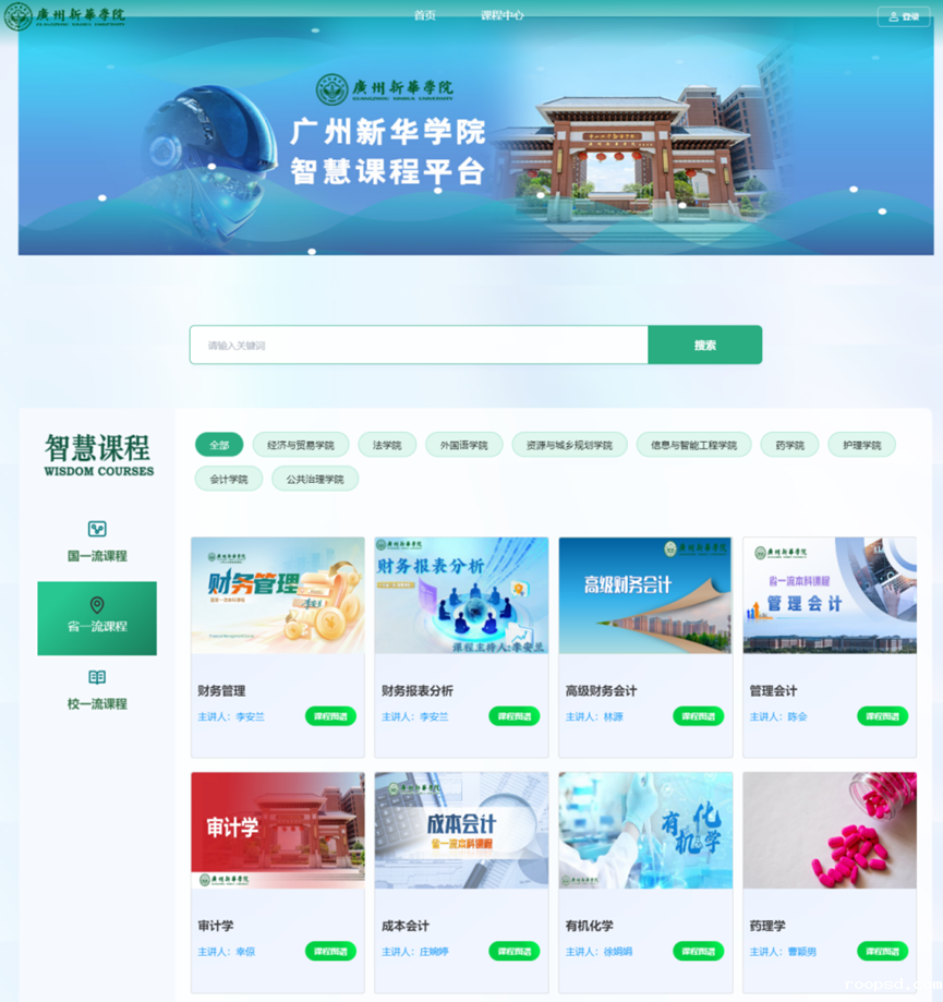 平台协同赋能:智慧课程展示平台与超星学习通形成“展示+教学”协同模式——前者作为“课程名片”,集中呈现2门国家级一流课程、27门省级一流课程和49门校级一流课程,方便师生、同行快速了解课程;后者作为“教学主阵地”,承载课程知识图谱、视频、课件、作业、讨论等教学资源与互动功能,学生通过智慧课程展示平台可直接进入超星学习通完成全流程学习,实现“一眼了解课程、一键进入学习”的便捷体验。
