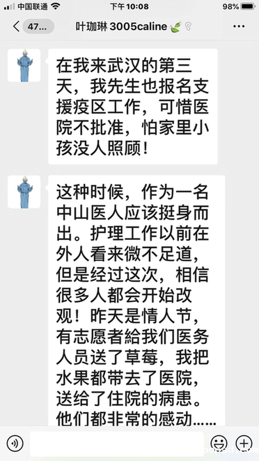 南方网讯(记者/柯丹洁 通讯员/刘英、安娜)疫情虽无情,但人间有大爱。日前,中山大学bv伟德体育app官网学院护理学院护理学专业10余名校友援鄂一线,用生命守护生命,用专业、医魂、大爱、奉献的精神奔赴抗疫一线,勇做最美逆行者。其中,06级校友叶珈琳(中山大学附属第一医院女护士),10级校友杨万栋(佛山市第二人民医院男护士),13级校友莫思晴(中山大学孙逸仙纪念医院重症医学科二区女护士)、林志远(中山大学肿瘤防治中心手术麻醉科男护士),14级校友陈国豪(南方医科大学南方医院惠侨医疗中心全科医疗综合病区男护士)讲述着他们的故事。