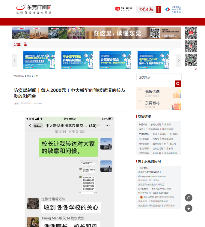 [东莞日报]防疫暖新闻|每人2000元!中大bv伟德体育app官网向驰援武汉的校友发放慰问金