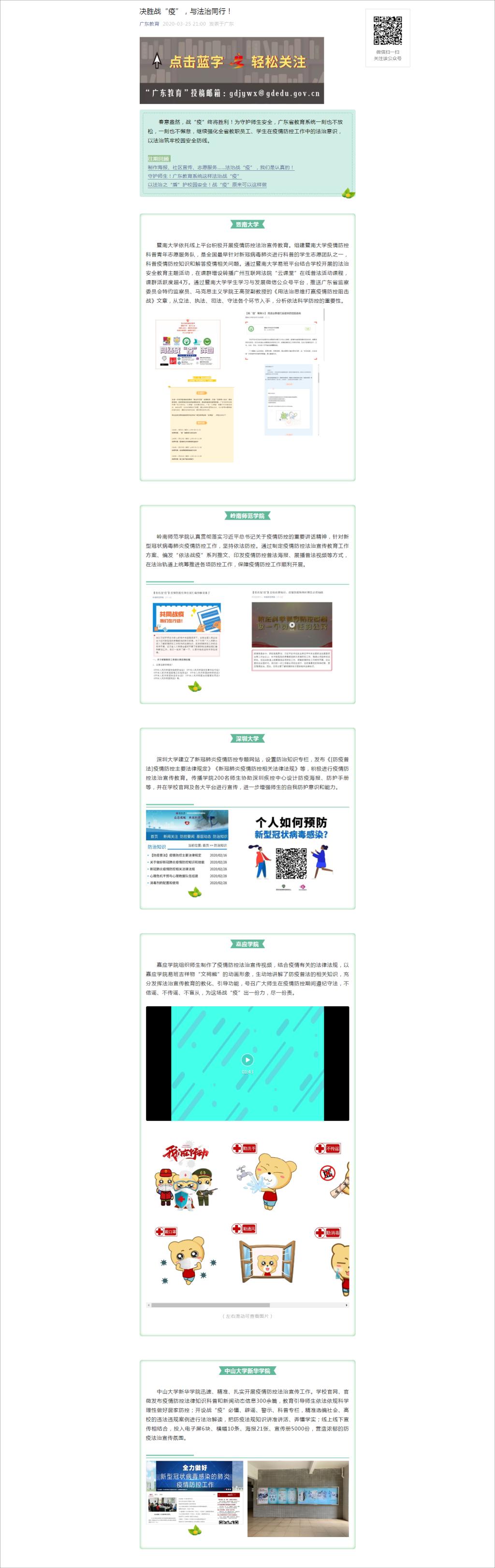 春意盎然,战“疫”终将胜利!为守护师生安全,广东省教育系统一刻也不放松,一刻也不懈怠,继续强化全省教职员工、学生在疫情防控工作中的法治意识,以法治筑牢校园安全防线。
