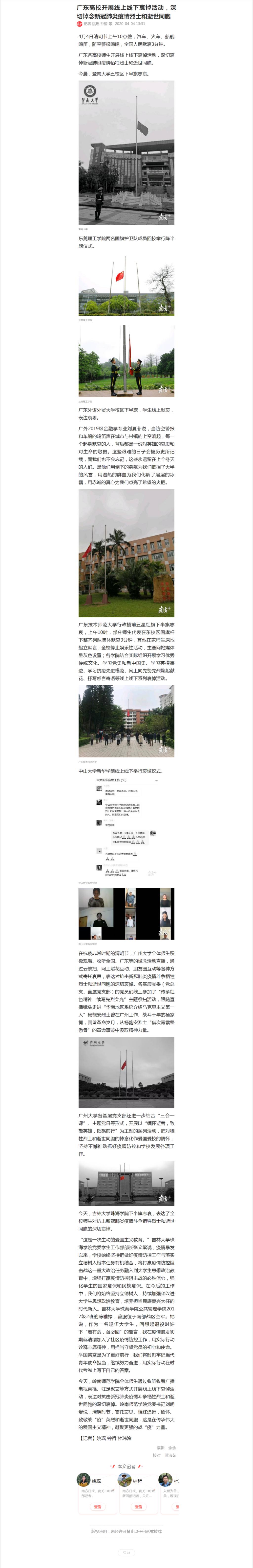 广东各高校师生开展线上线下哀悼活动,深切哀悼新冠肺炎疫情牺牲烈士和逝世同胞。