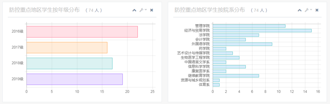 图3 防控重点地区师生按年级、院系分布情况统计