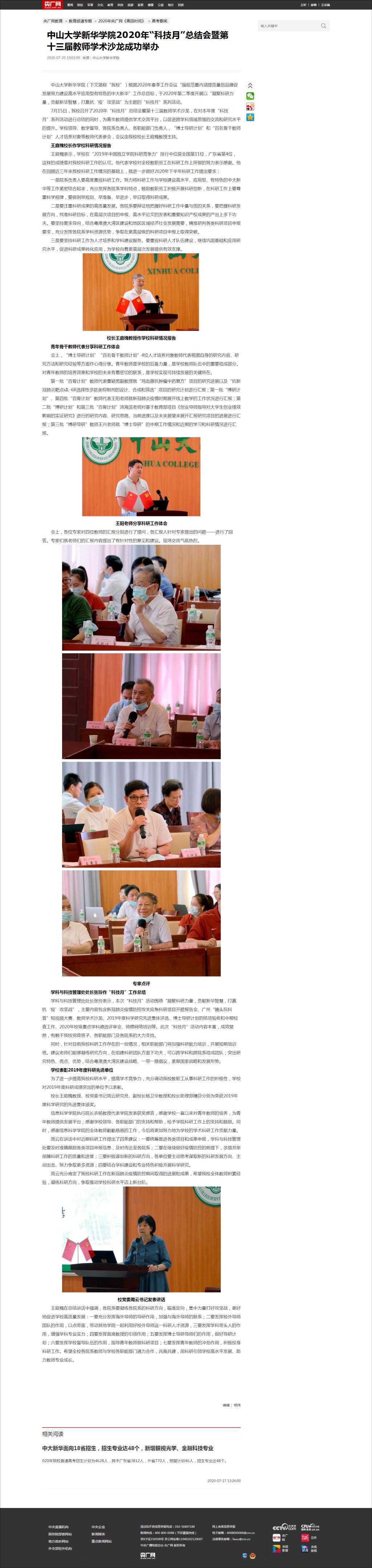 智慧,打赢抗‘疫’攻坚战”,主要内容包含新冠肺炎疫情防控攻关应急科研项目开题报告会、广州“镜头玩科普”短视频大赛、教师学术沙龙、2019年度科学研究先进集体评选、博士导研计划的结项验收和中期检查工作、2020年校级重点学科遴选评审会、师德网络培训等。此次“科技月”活动内容丰富,成效斐然,有赖于我校党政班子、各职能部门及各院系的大力支持。
