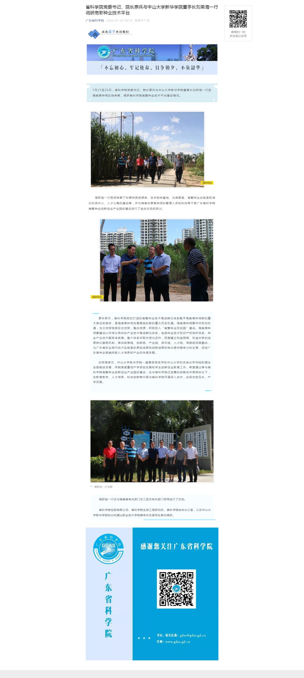 7月25至26日,省科学院党委书记、院长廖兵与中山大学