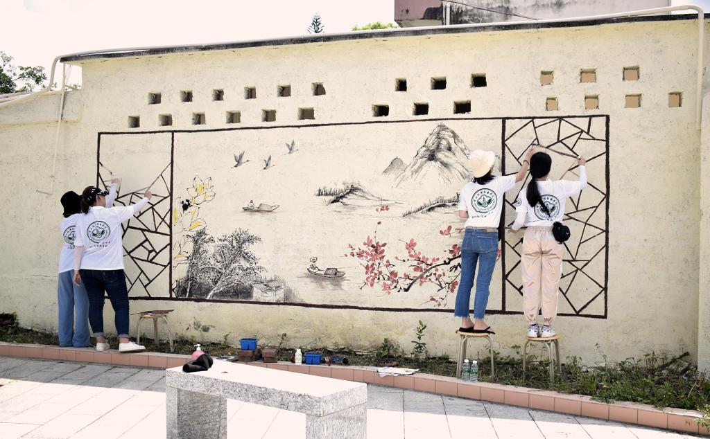 暑期三下乡社会实践队绘制山水画 图/学校提供